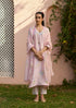 Complementing the kurta is a pair of pants featuring a hand-painted striped pattern, adding a contemporary twist to this silhouette.