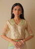 Like the light filtering through morning mist, the Sunlit Morning Blouse is all softness and glow. Crafted from handwoven organza mulberry silk, it features delicate hand embroidery in thread and beads along a scalloped collar, buttons, and sleeve hem.