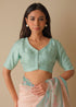 A V-neckline framed with subtle cord piping adds refined definition, echoed along the sleeves. With a front hook-and-eye opening for thoughtful comfort, it is a versatile piece designed to complement both festive drapes and everyday elegance.
