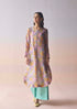 Handspun in Malda silk, the kurta features a delicate all-over hand-painted floral print, with a center-front button opening that adds both detail and ease. The floral print is delicately highlighted with sequins and beads for a subtle shimmer. Buttoned cuffs and a rounded hem lend refinement to its relaxed fit, while wide-bottom pants complete the set with graceful fluidity.