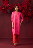 The Mystic Pink Kurta Set is crafted from the finest handwoven silk satin, combining luxurious texture with vibrant design. The kurta features a striking pattern of pink and scarlet stripes, creating a bold and contemporary look.