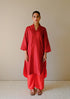The Mystic Scarlet Kurta Set is crafted from the finest handwoven silk satin, combining a luxurious texture with vibrant design. The kurta features a striking pattern of scarlet and burgundy checks, creating a bold and contemporary look.