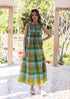 The Entwined Checkered Dress is crafted from handwoven fine silk khadi in a playful checks pattern, featuring soft gathers at the waist for a flattering flow. With a sleeveless cut, and delicate pintucks and floral embroidery on the yoke, it’s perfect for days that blend ease and elegance. The dress comes with a cotton silk slip.