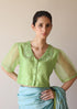 Like the light filtering through morning mist, the Sunlit Morning Blouse is all softness and glow. Crafted from handwoven organza mulberry silk, it features delicate hand embroidery in thread and beads along a scalloped collar, buttons, and sleeve hem.